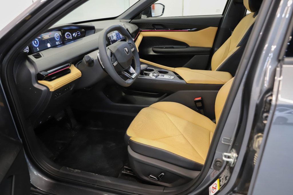 تتوفر السيارة بمقاعد جلدية فاخرة باللون البرتقالي الرياضي أو الأسود مع دعم لخاصية التهوية والتدليك في الفئات العليا وسقف بانورامي واسع يمنح شعوراً بالرحابة داخل المقصورة.